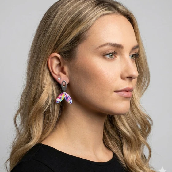 Banana Split earrings aren’t just jewelry—they’re wearable art. These dangle earrings combine glossy shine, a bold layered shape, and lightweight wearability. Unlike heavy statement pieces, they provide eye-catching appeal without strain. The stainless steel studs ensure comfort and durability, while the handmade design guarantees originality. When you choose these earrings, you’re choosing accessories that are as individual as your style.