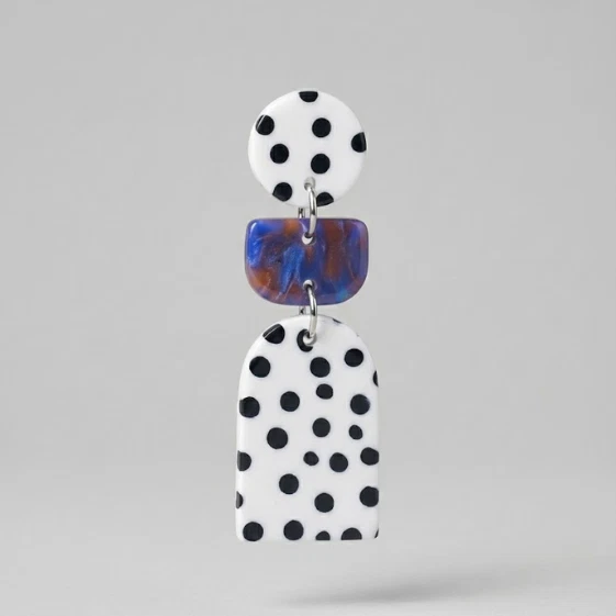 They’re the easiest kind of statement earrings: graphic, modern, and wearable with basically everything. The dots keep it crisp and playful, while the blue marbling adds that “not basic” detail.