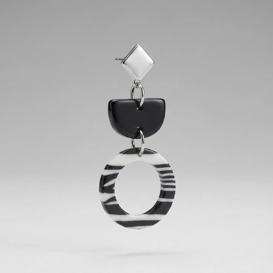 Meet Bloom Babe, the drop earrings that turn everyday style into something effortlessly bold. Handcrafted from Fimo polymer clay, each pair features a layered geometric design that combines soft curves with striking zebra-inspired stripes. Lightweight yet eye-catching, these earrings perfectly balance modern art and wearable comfort.