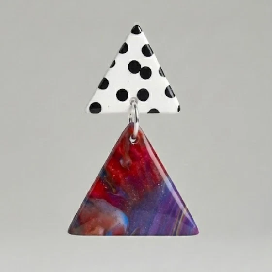 Because these dangle earrings make a simple outfit look intentional. The polka dot triangle keeps it crisp, the marbling keeps it artsy, and the shape is bold without being bulky.