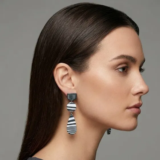 Modern Statement Silhouette – Long drop shape with fluid lines and a zebra-inspired pattern.