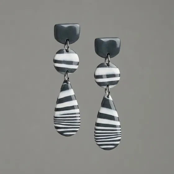 Meet Juicy Drop, the statement earrings that bring artful boldness to modern earring design. Handcrafted from polymer clay, each pair features a sleek, sculptural silhouette with zebra-inspired stripes that add just the right amount of drama. These earrings celebrate movement and contrast — glossy black meets soft white in a design that’s striking yet surprisingly wearable.